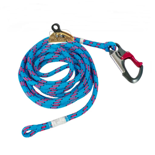 14' safety lanyard made from Yale Blue Moon rope with an ISC double action snap hook and an SMC rope grab to make easy lanyard adjustments.