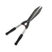 This is our best hedge shear. The blades are made of hardened steel and precision ground to be scissor sharp. They have epoxy coated metal handles and plastic grips. The upper blade is serrated at its base.