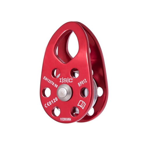 Light-weight, high strength aluminum 1/2" micro pulley from ISC with moveable side plates. Rated at 36kn.