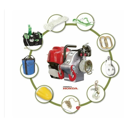 View full detailsThe Portable Winch Forestry assortment contains the following: • Portable Winch PCW5000 • 150' 1/2"  low stretch Bull Rope •  Rope Bag • (2) St...